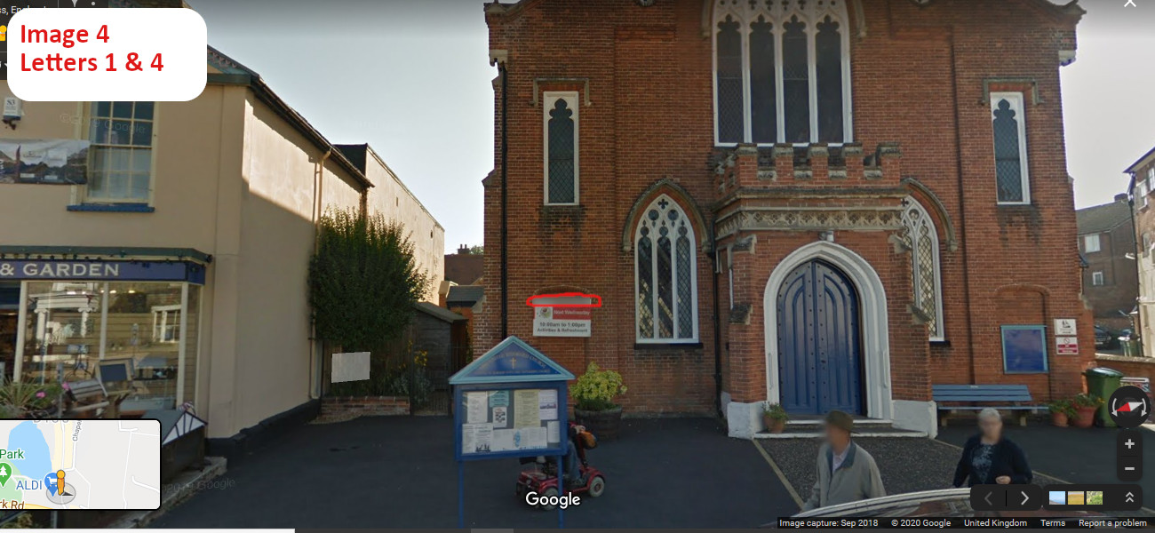 Find all the letters, then re-arrange to find where the "treasure" has been hidden. It will be somewhere in the same town visible on Street View/Google Maps.