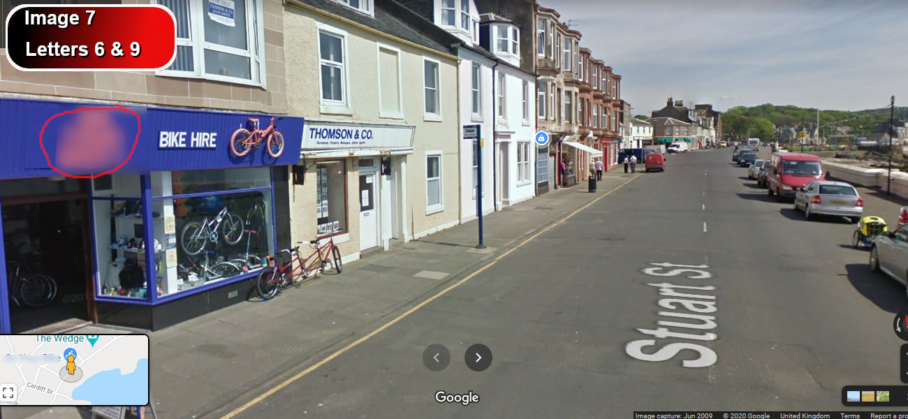 Find all the letters, then re-arrange to find where the "treasure" has been hidden. It will be somewhere in the same town visible on Street View/Google Maps.