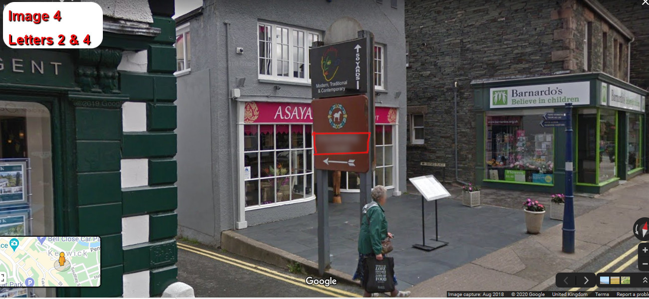 So if you find the sign reads St. Mary's Church and the panel says letters 4 & 8, you take the letters A and C. Make a note of these.