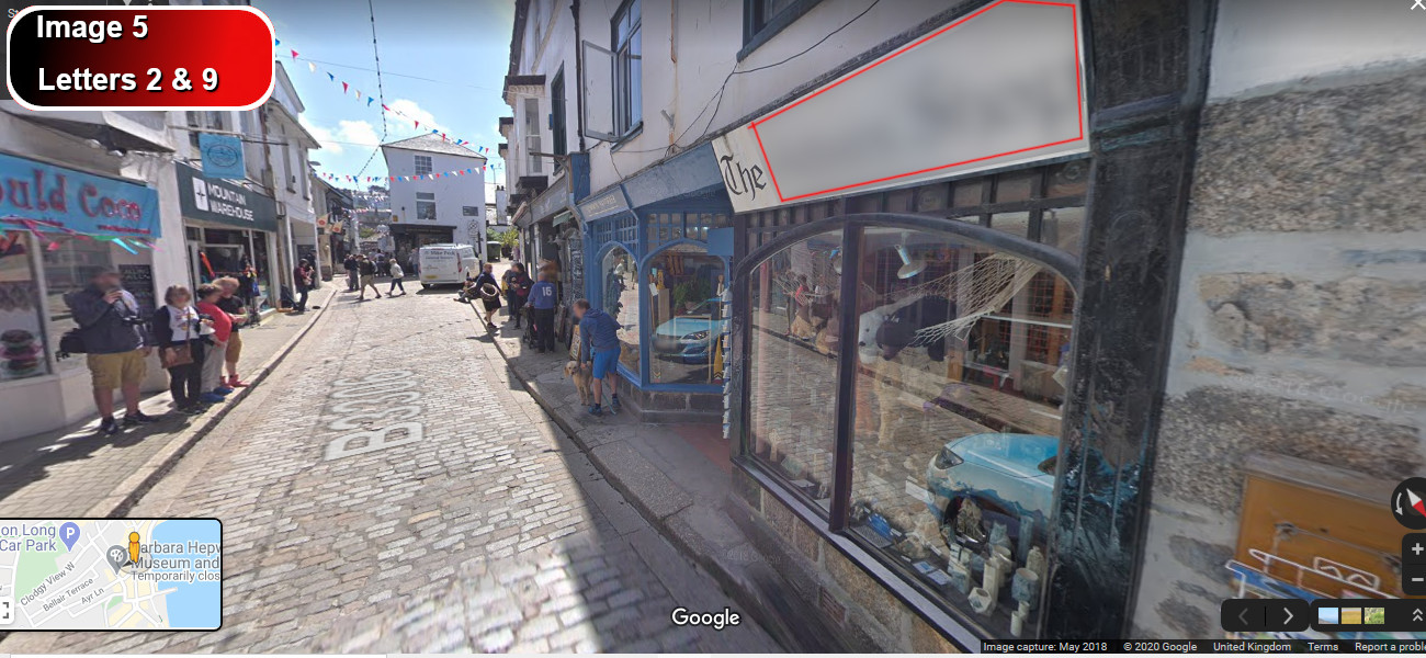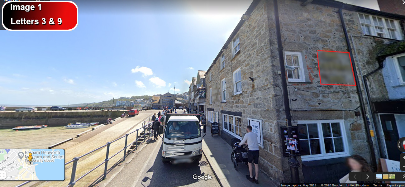 Find all the letters, then re-arrange to find where the "treasure" has been hidden. It will be somewhere in the same town visible on Street View/Google Maps.