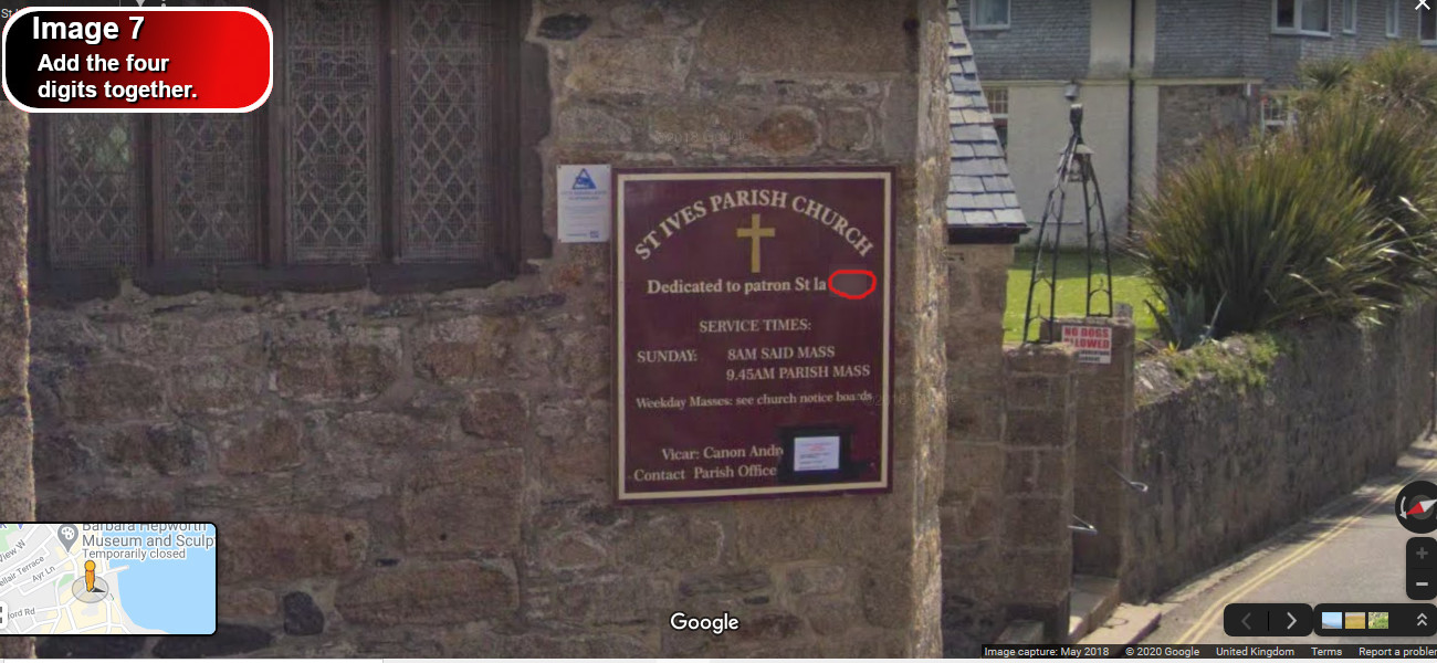 So if you find the sign reads St. Mary's Church and the panel says letters 4 & 8, you take the letters A and C. Make a note of these.