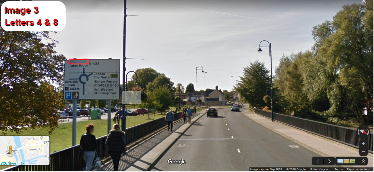 Then find the appropriate letters in the blurred sign as indicated in the white panel in the top corner.