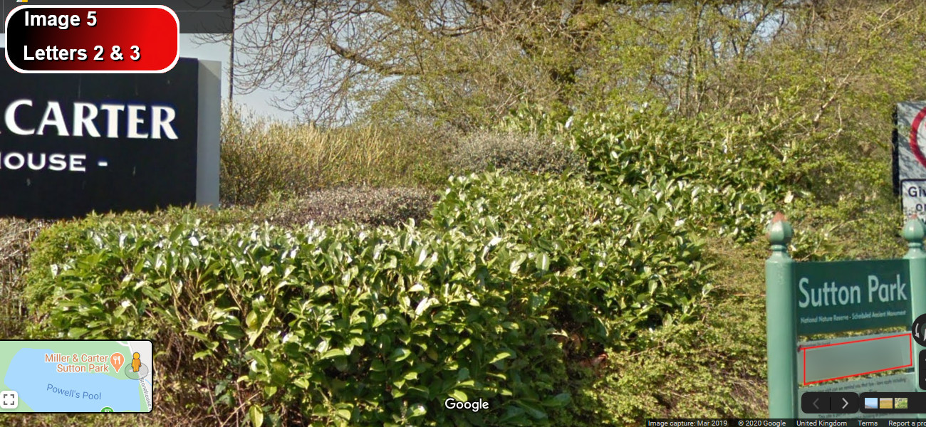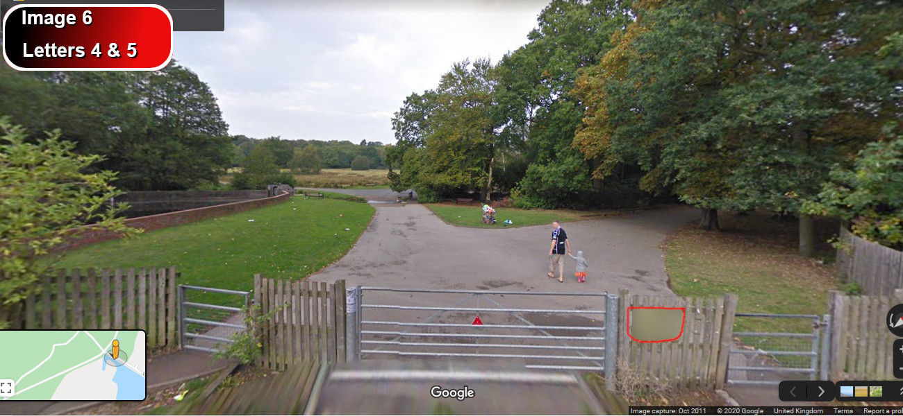 Find all the letters, then re-arrange to find where the "treasure" has been hidden. It will be somewhere in the same town visible on Street View/Google Maps.