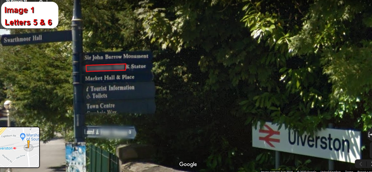 Then find the appropriate letters in the blurred sign as indicated in the panel in the top corner.